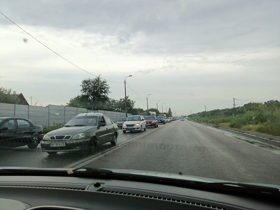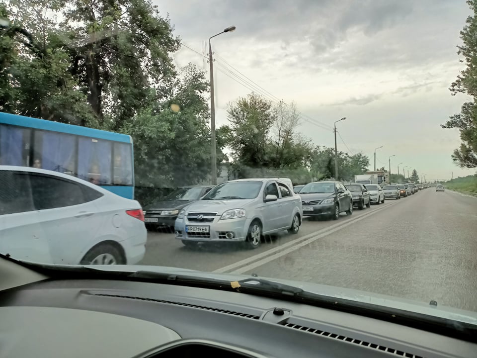 Так, на Хортице сильно затруднено движение автомобилей. Часто пробка бывает до Хортицкой национальной учебно-реабилитационной академии, но на этот раз она растянулась на весь остров.