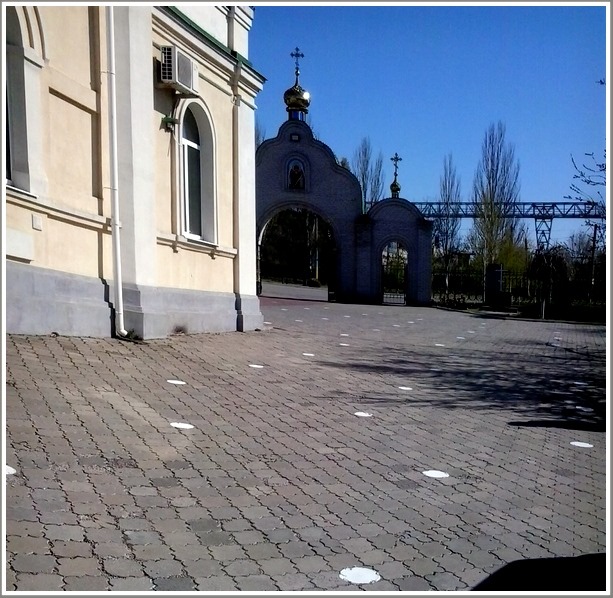 «Был свидетелем: при мне сегодня, 8 апреля 2020 года, эти белые пятна наносили на территорию, окружающую мой любимый запорожский храм – в честь святителя Николая [Правый берег, улица Песчаная]». Ее цель — определить безопасное расстояние между людьми во избежание рисков заражения вирусом.