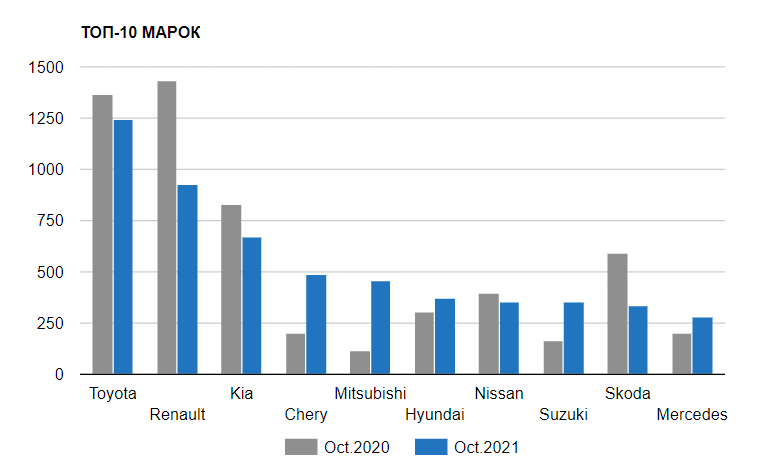 2. RENAULT — 926 шт., октябрьские регистрации автомобилей этой марки упали на 35%;
