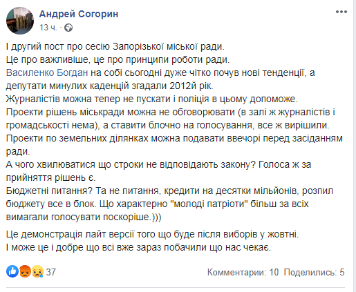 «І другий пост про сесію Запорізької міської ради.