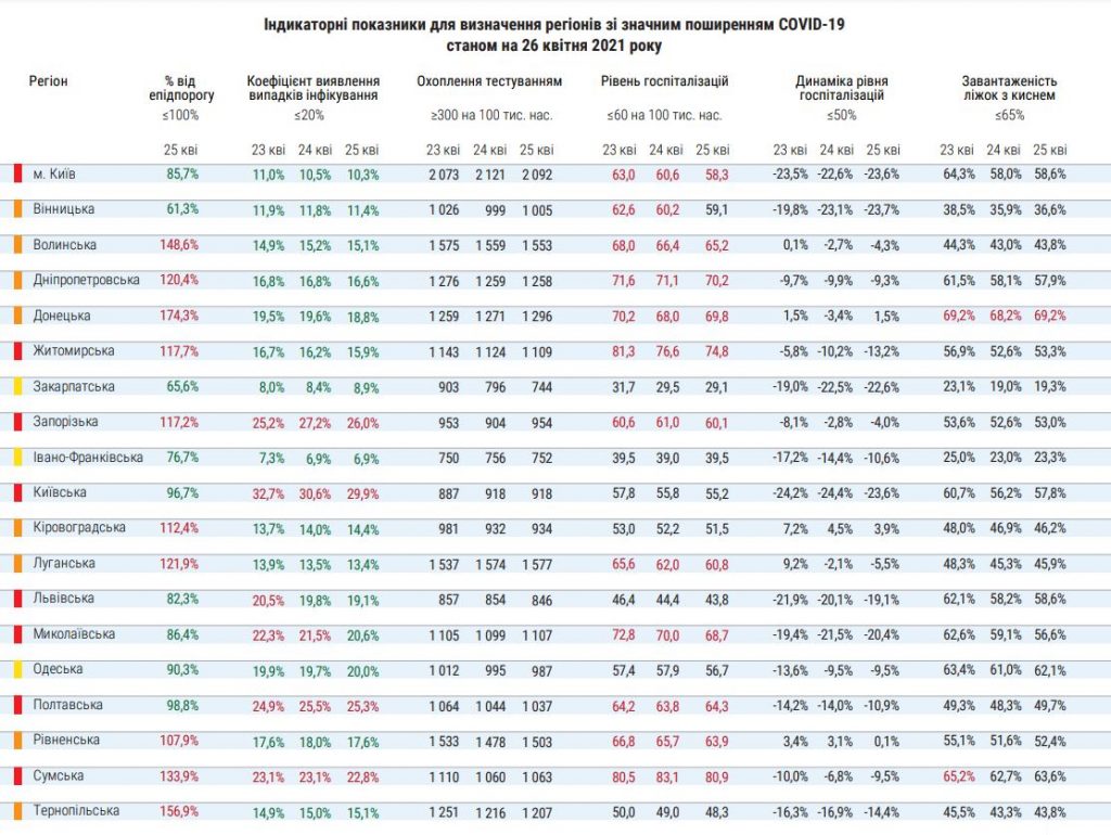 По состоянию на 26 апреля, в «красной» зоне карантина находятся г. Киев и 10 областей, среди которых и Запорожская.