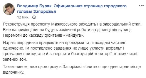Мэр Запорожья на своей странице в Facebook рассказал, на каком этапе проходят работы, и когда они будут завершены.