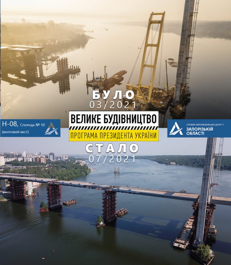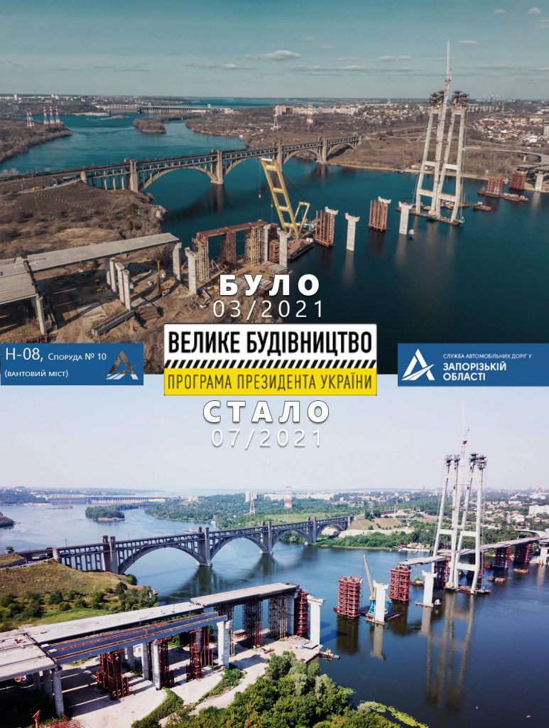 В Запорожье продолжается строительство новых мостов. Появились фото, на которых видно результат последних 4 месяцев строительства — с марта по июль.