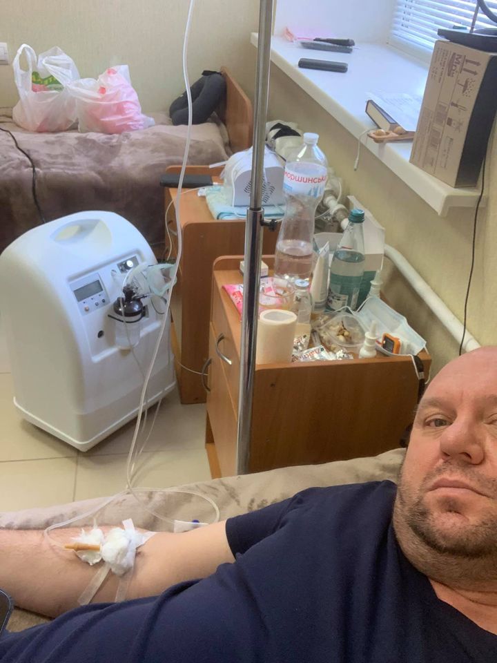 «Знаходжусь я в лікарні, діагностували ковід 19, двухстороннє запалення легень з ураженням 45% і 35% … було не просто, а вкрай тяжко!!!» — написал Калиман.