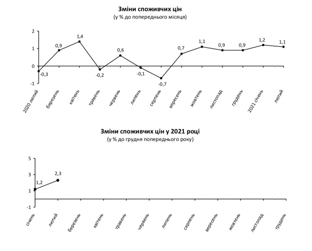 Как сообщается, инфляция на потребительском рынке Запорожской области в феврале 2021г. по отношению к январю 2021г. выросла на 1,1% (в Украине – на 1,0%), по отношению к декабрю 2020г. – на 2,3% (на уровне показателя по Украине).