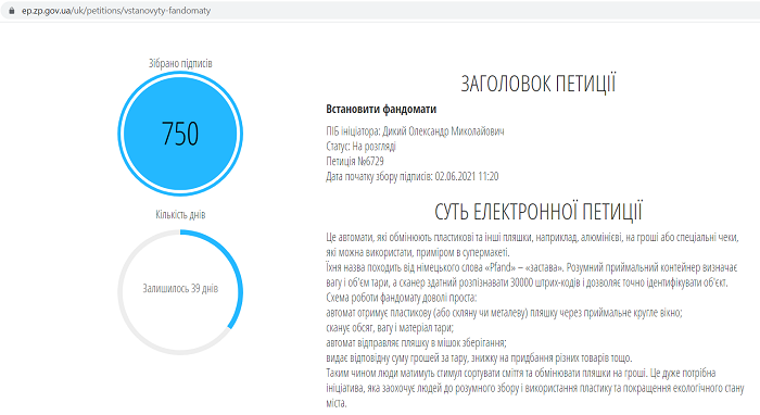 «Таким образом люди будут иметь стимул сортировать мусор и обменивать бутылки на деньги. Это очень нужная инициатива, которая поощряет людей к разумному сбору и использованию пластика, улучшению экологического состояния города», — пишет инициатор петиции.