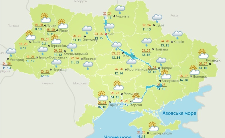 В четверг, 19 августа, дожди обойдут стороной только западную Украину, Чернигов, Луганск и Киев. На остальной территории страны – дожди с грозами, температура воздуха прогреется максимум до +29 градусов.