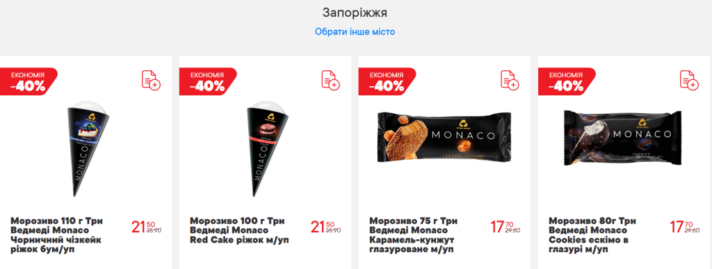 Компанія АТБ також опублікувала перелік нових акційних товарів на своєму сайті. Зокрема, в Запоріжжі у магазинах мережі за знижкою можна купити: