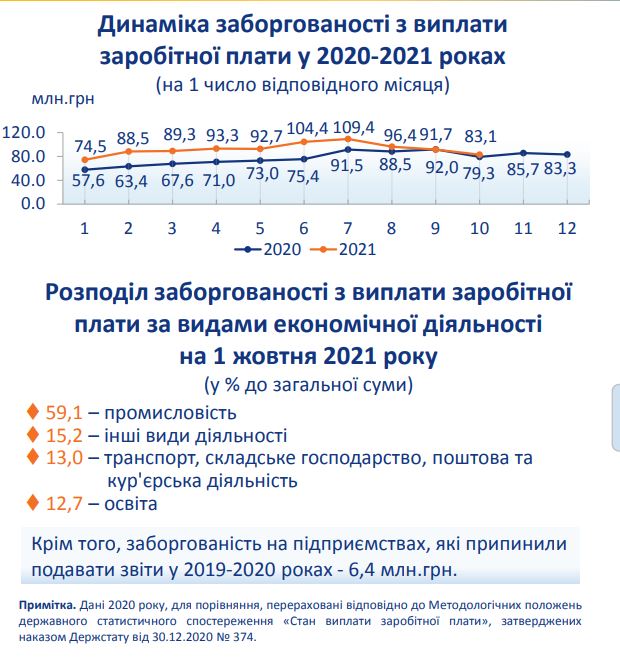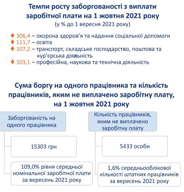 За последний год значительно выросли долги в сфере охраны здоровья (306,4% по отношению к сентябрю 2020 г). То есть долги по выплате зарплаты увеличились в 3 раза.