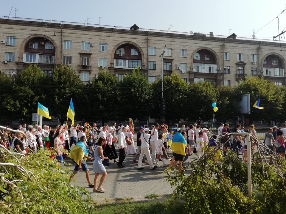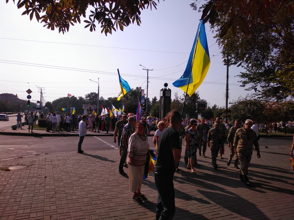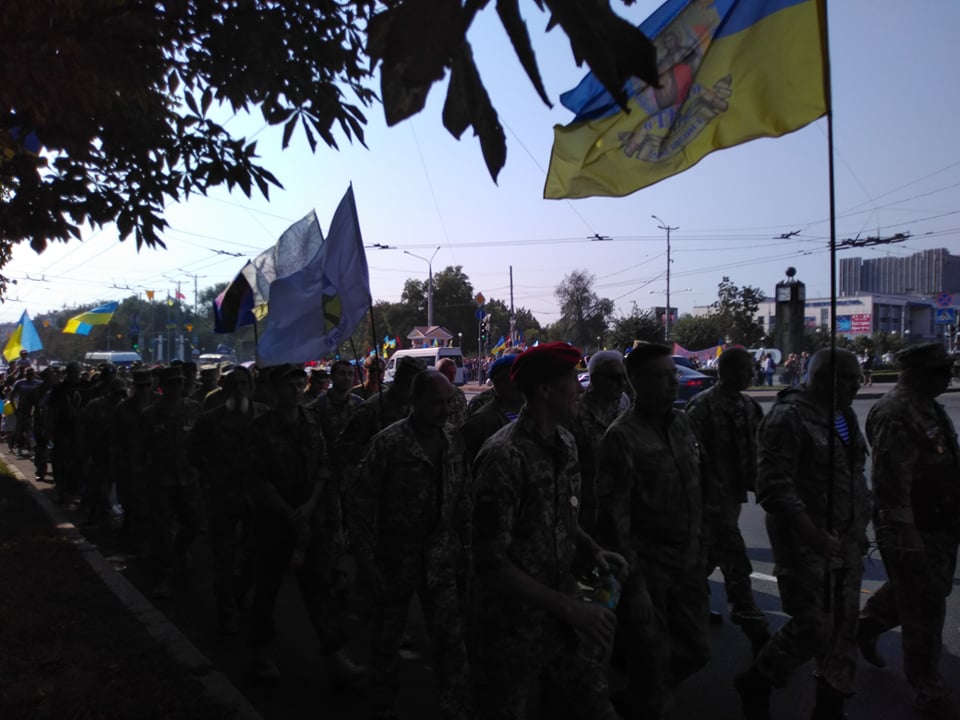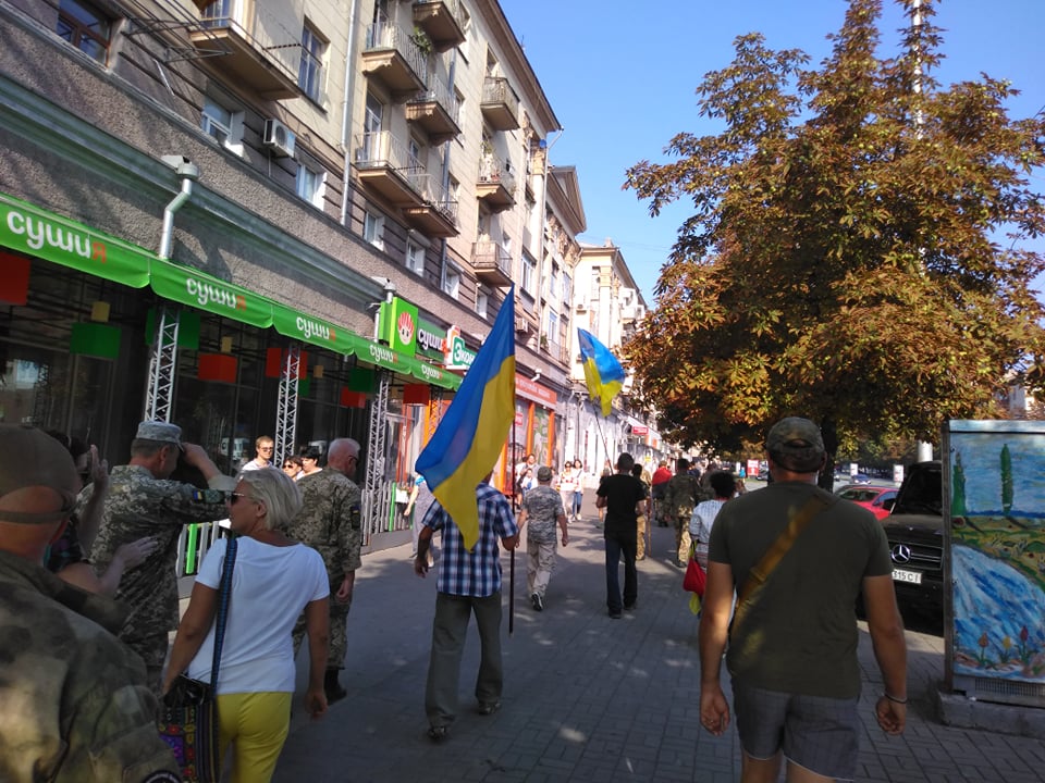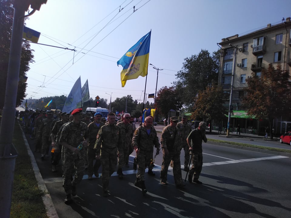 В ходе празднования на бульваре Шевченко образовалось две колонны: одна, большая, прошла к Майдану героев, что возле ОГА , а другая — к мемориалу погибших воинов в парке Металлургов. Там участники возложили цветы и вспомнили о тех тысячах воинов, которые отдали жизнь за мир на украинской земле.