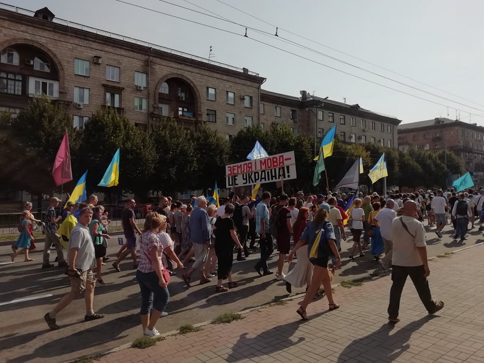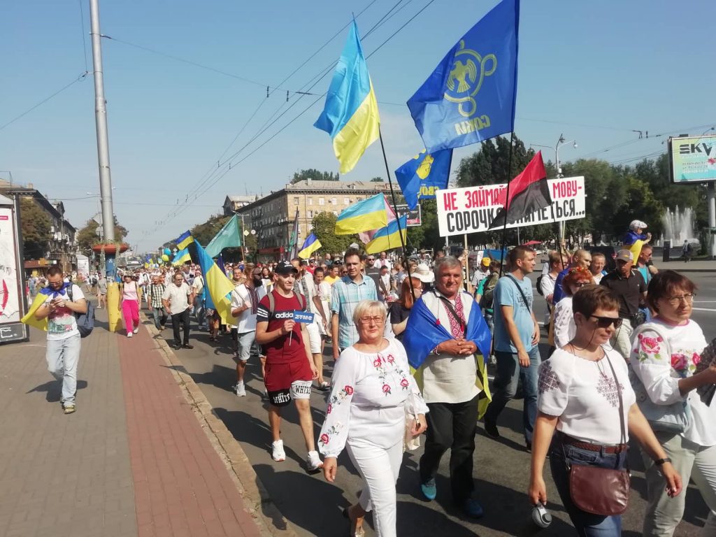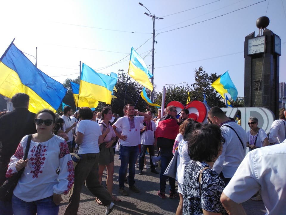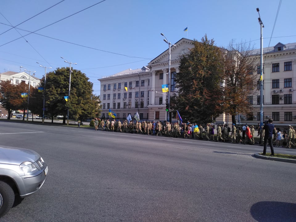В ходе празднования на бульваре Шевченко образовалось две колонны: одна, большая, прошла к Майдану героев, что возле ОГА , а другая — к мемориалу погибших воинов в парке Металлургов. Там участники возложили цветы и вспомнили о тех тысячах воинов, которые отдали жизнь за мир на украинской земле.