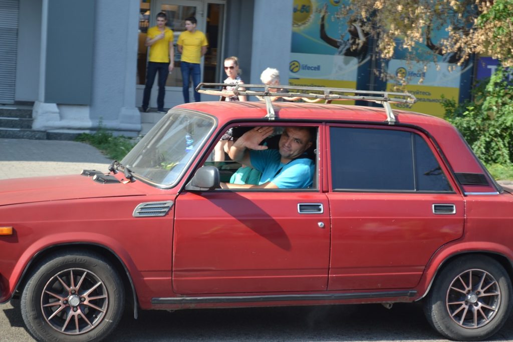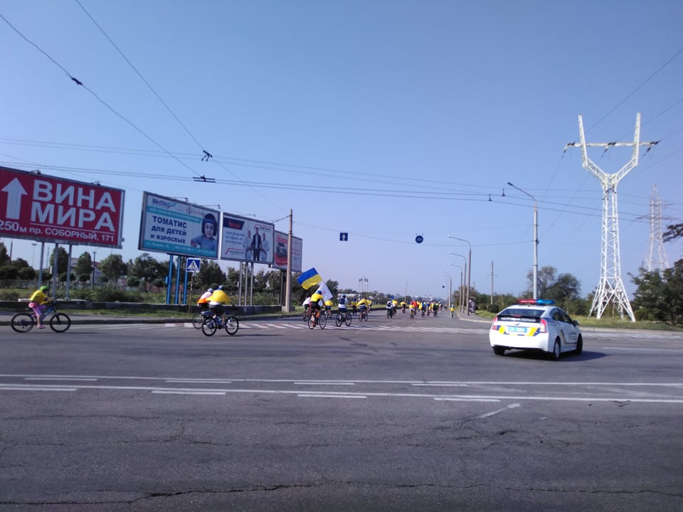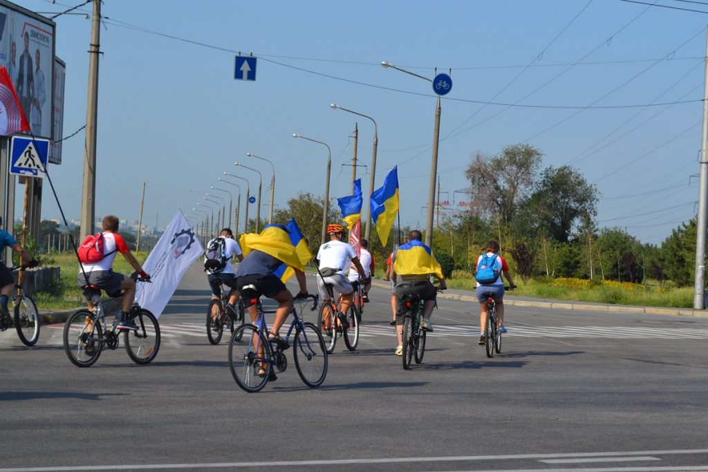 Также не остались в стороне от празднования и велосипедисты. Большая колонна велолюбителей с флагами проехала в сторону о. Хортица.