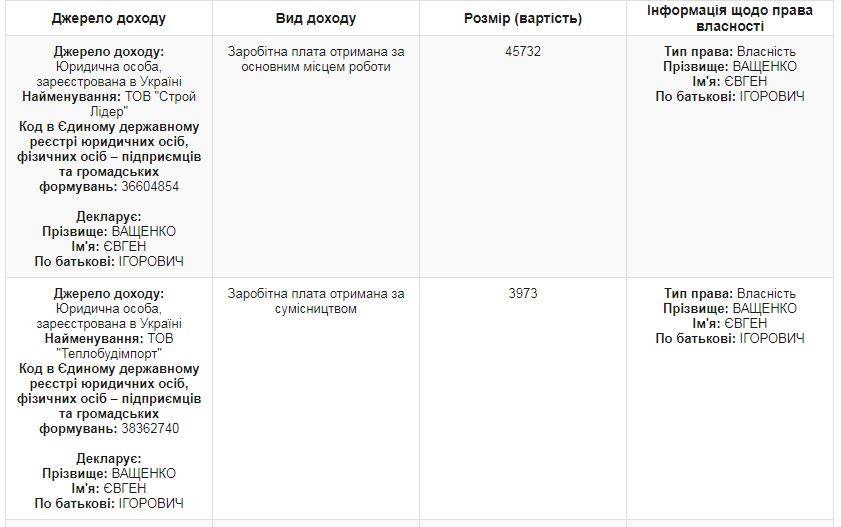 Ващенко указал, что его основным местом работы является ООО “Строй Лидер”, а еще зарплату по совместительству он получает в “Теплобудимпорте”.