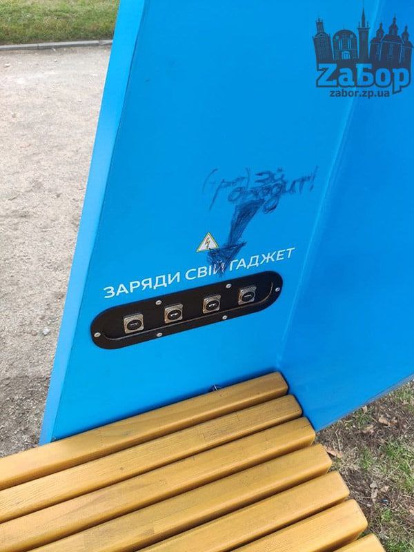 Несмотря на то, что лавочки появились совсем недавно, их уже успели испортить вандалы. На них появились надписи черным маркером.