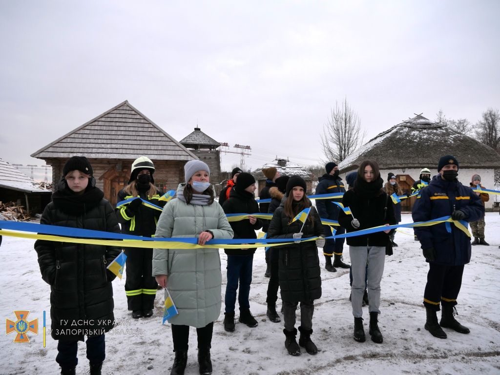 Вчера, 21 января, в Запорожье на острове Хортица ко Дню Соборности Украины сотрудники ГСЧС, Нацполиции, Патрульной полиции, Нацгвардии, Пограничной службы и скорой помощи создали «живую» карту Украины.
