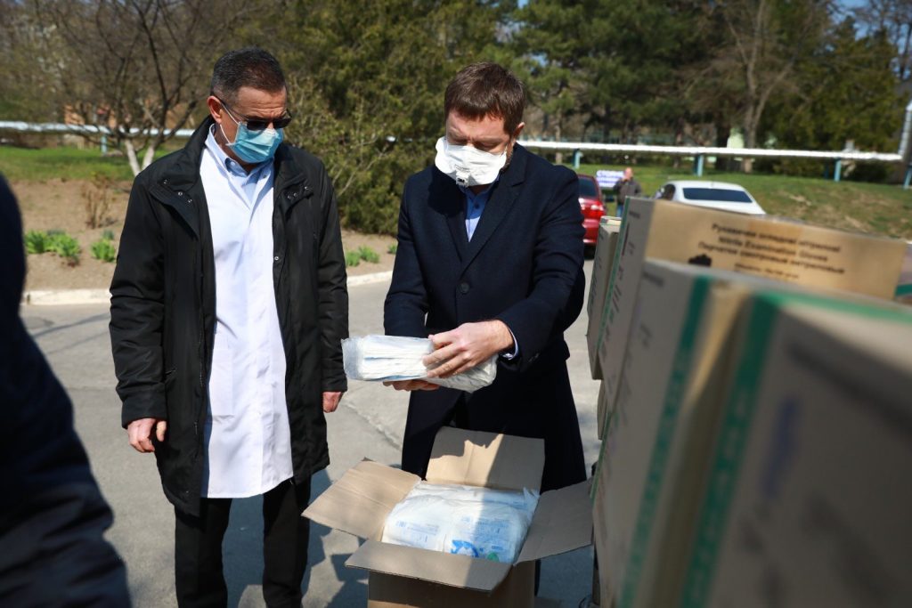Глава Запорожской области, Виталий Туринок, привез в больницу помощь от Фонда Вадима Новинского, а именно – 100 медицинских костюмов биозащиты, 1560 медицинских биозащитных респираторов №95 для «красной зоны» рахных производителей, 80 респираторов №99 также для «красной зоны», 30 ящиков медицинских перчаток по 1000 штук в каждом, 7 контуров для ИВЛ, 100 трубок эндотрахеальных, 10 фильтров для ИВЛ.