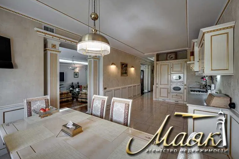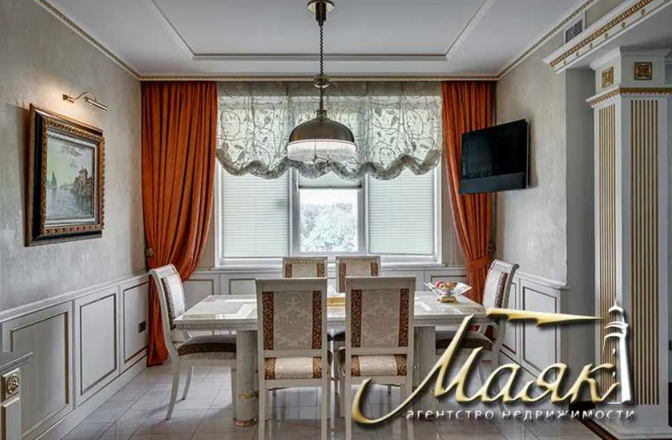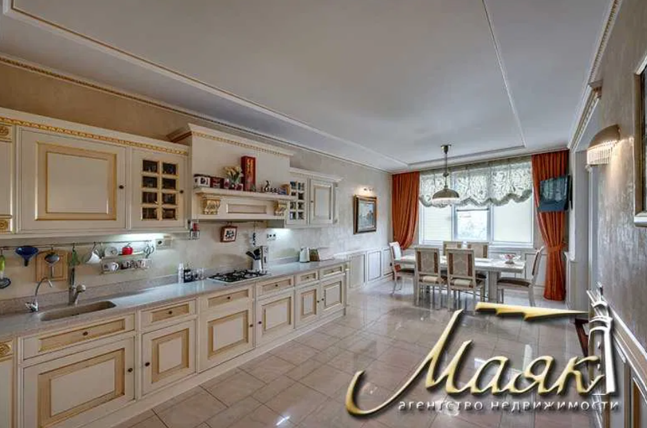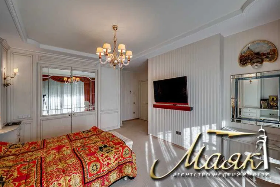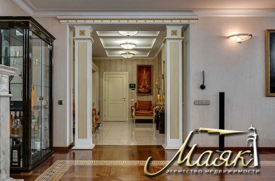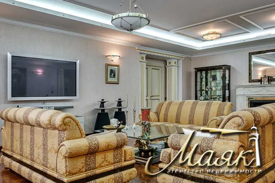 Так, квартира общей площадью 230 кв. метров расположена на 6-м этаже 8-ми этажного внутриквартального дома на закрытой охраняемой территории в Александровском районе. Отмечается, что дизайнерский ремонт выполнен в классическом стиле.