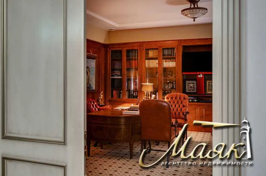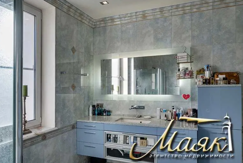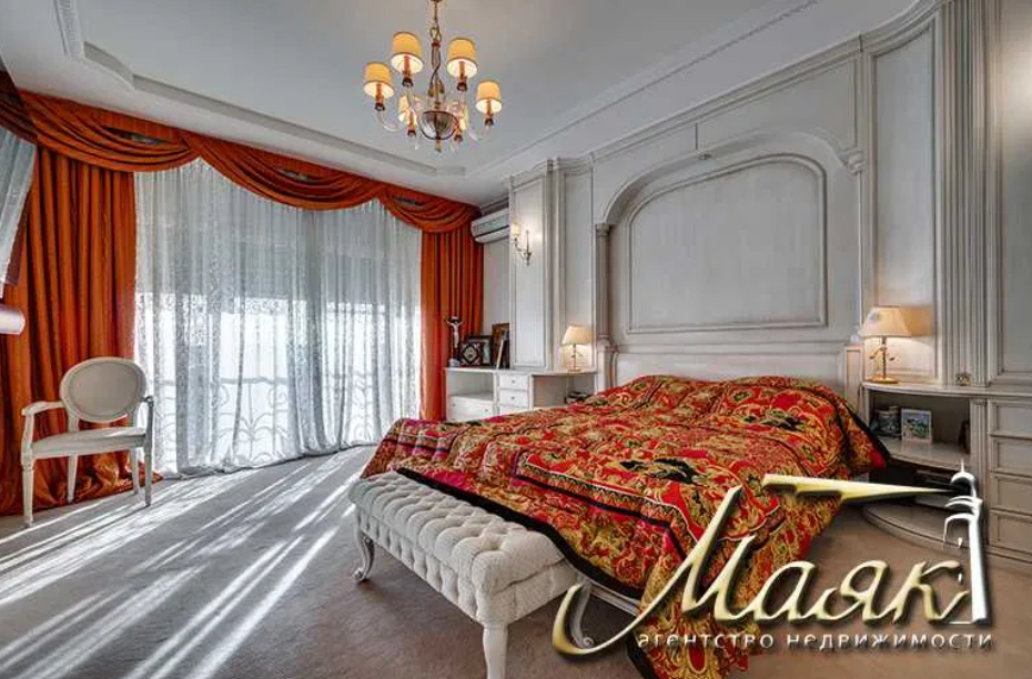 Также есть отдельный хозяйственный блок-гардеробная и кладовка на этаже. Вдобавок, на самой территории — гараж. Квартира продается с мебелью. Также комфорта ей добавляют наличие видеонаблюдения и охраны на территории, панорамные окна и сигнализация.