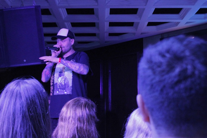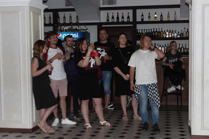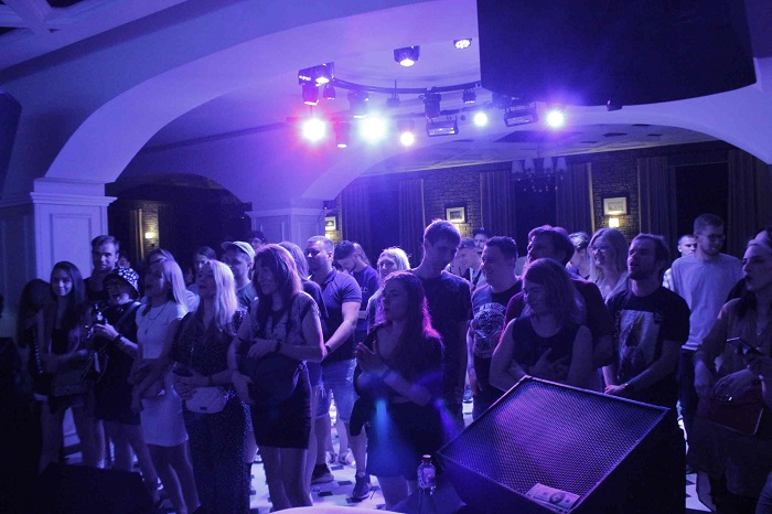 Изначально планировалось, что проводиться он будет во дворике заведения «Мануфактура Розенталь», но из-за жары выступления перенесли в зал – под кондиционеры. Это не испортило атмосферу, а только ее улучшило: гостям в зале было прохладно, а также при желании они могли перекусить и выпить, не уходя далеко от сцены.