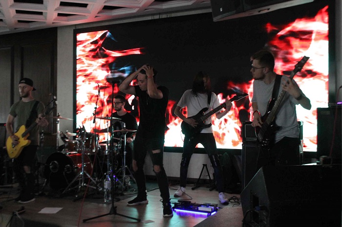 В 20:00 началось выступление The Unsleeping. Ребят не все знали, но позже у них даже появились свои запорожские фанаты. И ведь не удивительно: образ у группы был неординарным, а вокалист исполнял песни очень трогательно, с душой.