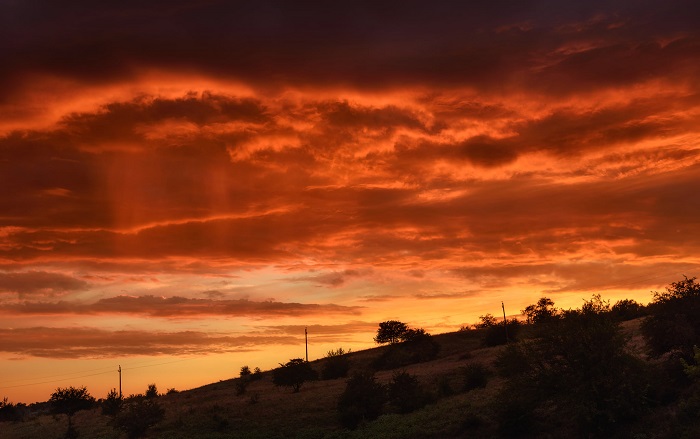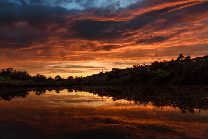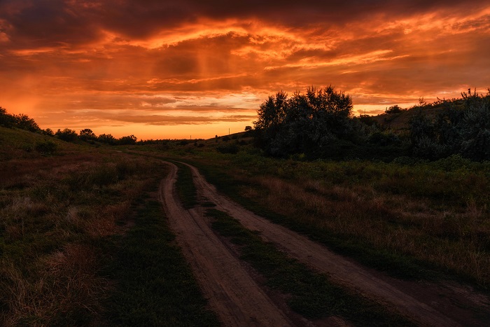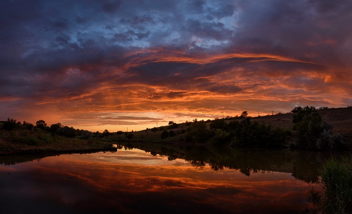 «Закат сегодня был шикарен. Искал, катаясь на велосипеде, ракурс где будет интересно поснимать полосы дождя с облаков. В итоге получилось куда интереснее. Заехал в Партизанскую балку как раз, когда небо окрасилось в огненные цвет», — подписал публикацию ее автор.