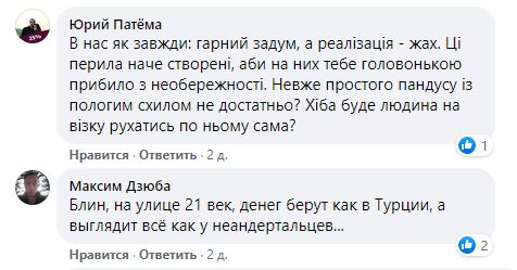 Так, некоторые пользователи отмечали неудобство пандуса и то, что по их мнению, он не устоит до следующего года. Также комментарий оставил Алексей, который сам передвигается на коляске. Он считает, что во время пользования пандусов могут испортиться подшипники на коляске.