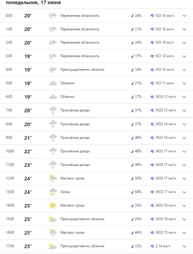 Так, в течение суток 17 июня ожидаются грозы (I уровень опасности, желтый).
