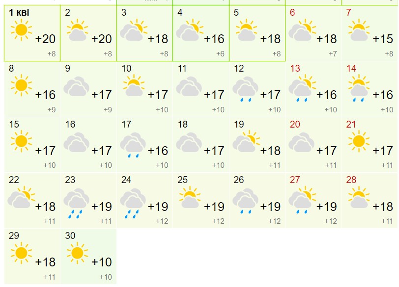 Прогноз на квітень 2024 року в Запоріжжі