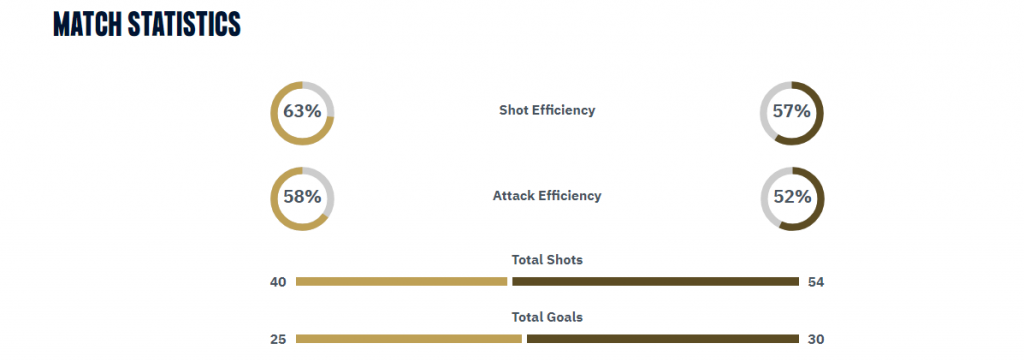 Несмотря на довольно большое количество потерь, невынужденных ошибок и неподготовленных бросков — «МОТОРу» удалось показать хорошую статистику и даже превзойти своего оппонента в результативности бросков и эффективности атак.