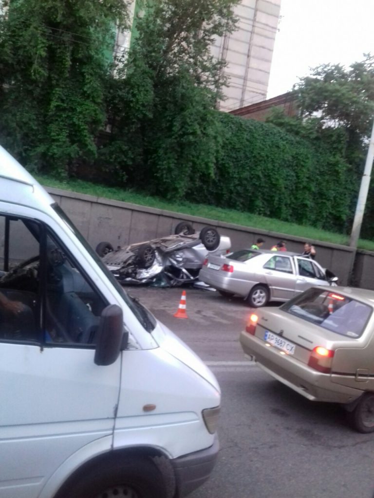 Как видно на видео, опубликованном в паблике «Это Запорожье» после столкновения от авто мало что осталось. Один из автомобилей перевернут, у друго полностью смят «передок».