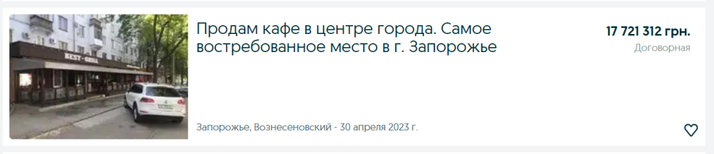 Вартість кафе автор оголошення оцінив у 480 000 доларів (близько 18 000 000 грн.).