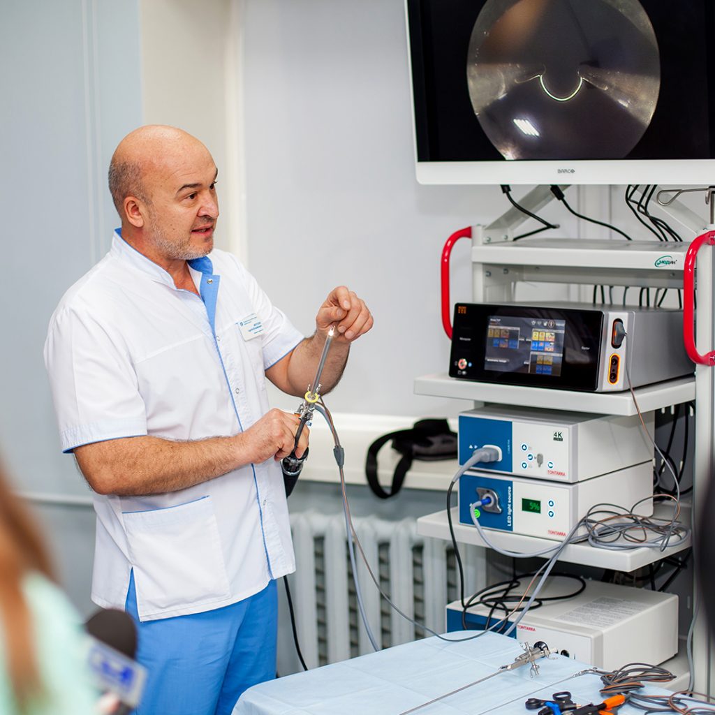 – Головна «фішка» обладнання – оснащення надчіткою візуалізацією 4К. Сьогодні це найсучасніша у світі оптика, яка тільки може бути. Вона дозволяє диференціювати різні структури органів та дрібні судини, а також виконувати надскладні операції без ушкодження здорових тканин. Це дозволить значно знизити ризик та частоту ускладнень у пацієнтів і скоротити час госпіталізації та реабілітації. Тобто вже на 2-3 добу після операції пацієнтка зможе повернутися до звичного ритму життя, – пояснив завідувач відділення гінекології Валерій Шалімов.