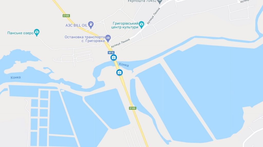 - на 310 км + 530 автодороги М-18 направление прибора г. Запорожье (ограничение скорости 50 км / ч) (возле с. Григоровка)