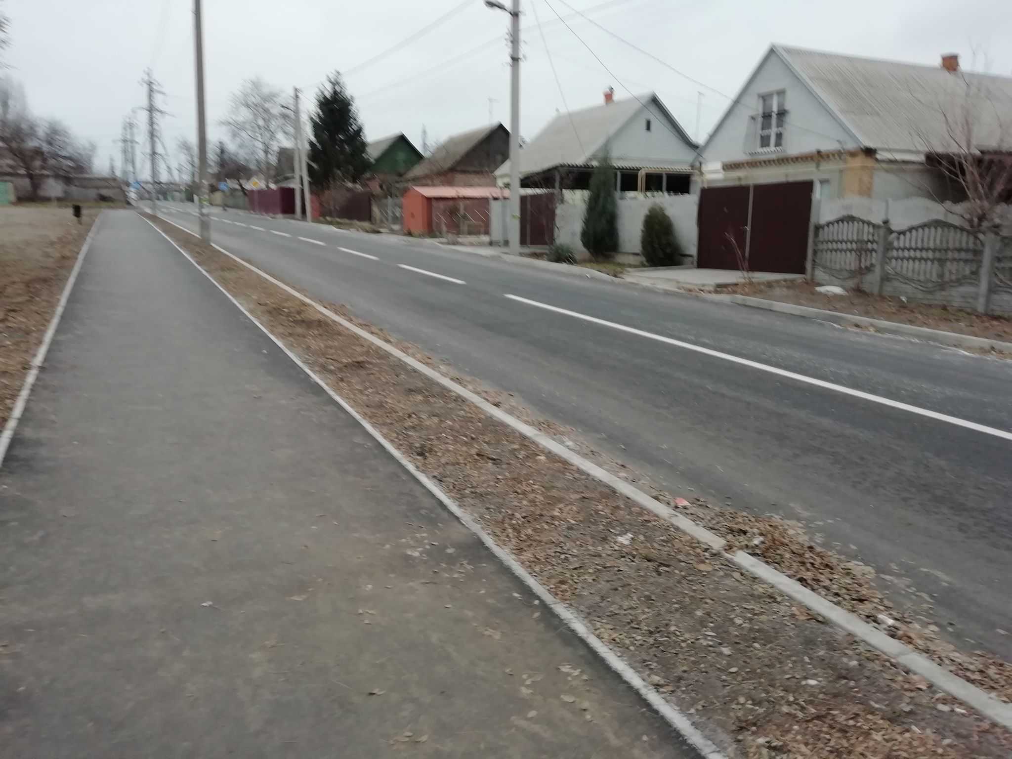 Как уже писал «Акцент» расширение дороги с 5 до 7,5 м сделало невозможным обустройство тротуаров с обеих сторон, и как считает часть жителей поселка может нести потенциальную опасность для жителей, в том числе детей. На все это — участок в 400 метров, потратили около 10 миллионов гривен.