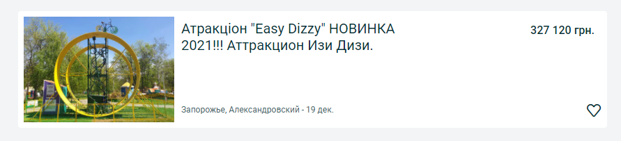 Стоимость экстремального аттракциона «Easy Dizzy» составляет 327 120 гривен (12 000 долларов).