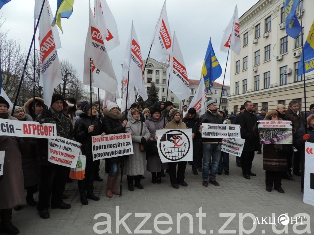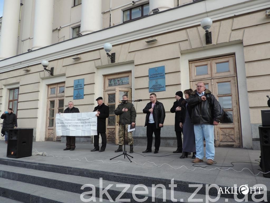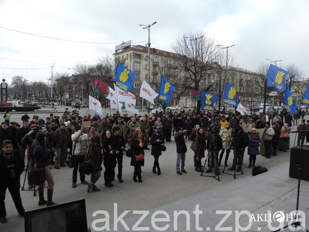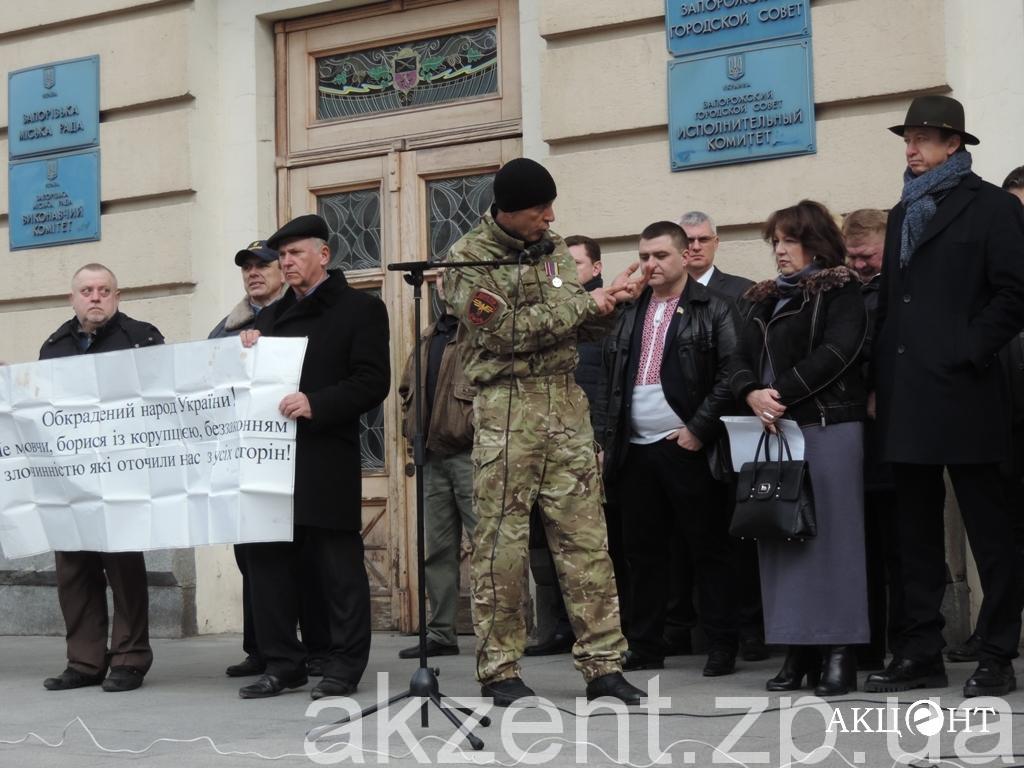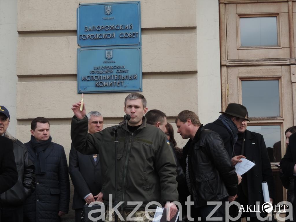 Перед началом второй сессии Запорожского городского совета 7-го созыва на площади перед мэрией состоялся митинг патриотических и демократичесих сил города. В нем приняли участие представители партий «Батькивщина», «УКРОП», «Самопомощь», общественной организации «Сила нации», гражданского корпуса полка «Азов», объединений воинов АТО, других политических и общественных организаций.