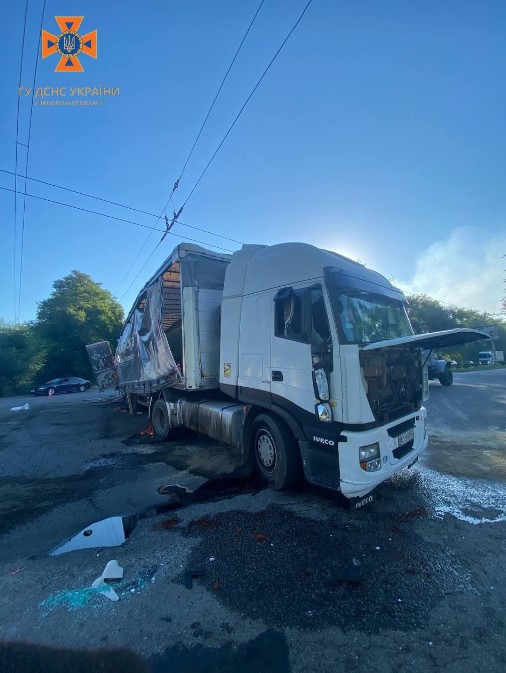 Зранку 15 серпня, після того як фахівці Електротрансу виконали спеціальні роботи, а власник автівки розвантантажив причеп, рятувальники за допомогою спеціальної техніки поставили багатотонник на колеса.
