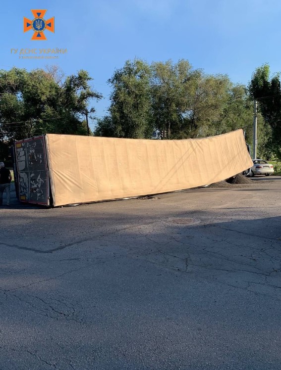 «Прибувши на місце події, співробітники ДСНС встановили, що під час руху перекинувся вантажний автомобіль, частково перекривши проїзд. Рятувальники прийняли рішення поставити автівку на колеса. Завдання ускладнювалося тим, що у причепі вантажівки був багатотонний вантаж соняшникового насіння, а наявність тролеїв електротранспорту унеможливлювали виконання робіт», — йдеться в повідомленні.