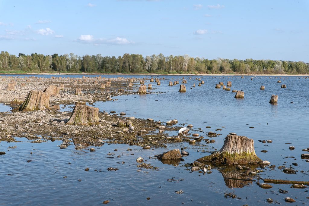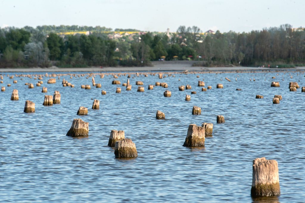 На місці Каховського «моря» регулярно знаходять різні речі, предмети залишки будівель тощо, які десятиріччями знаходилися під водою. Фотограф показав вирубаний до заповнення водосховища ліс, який виявив під Запоріжжям.