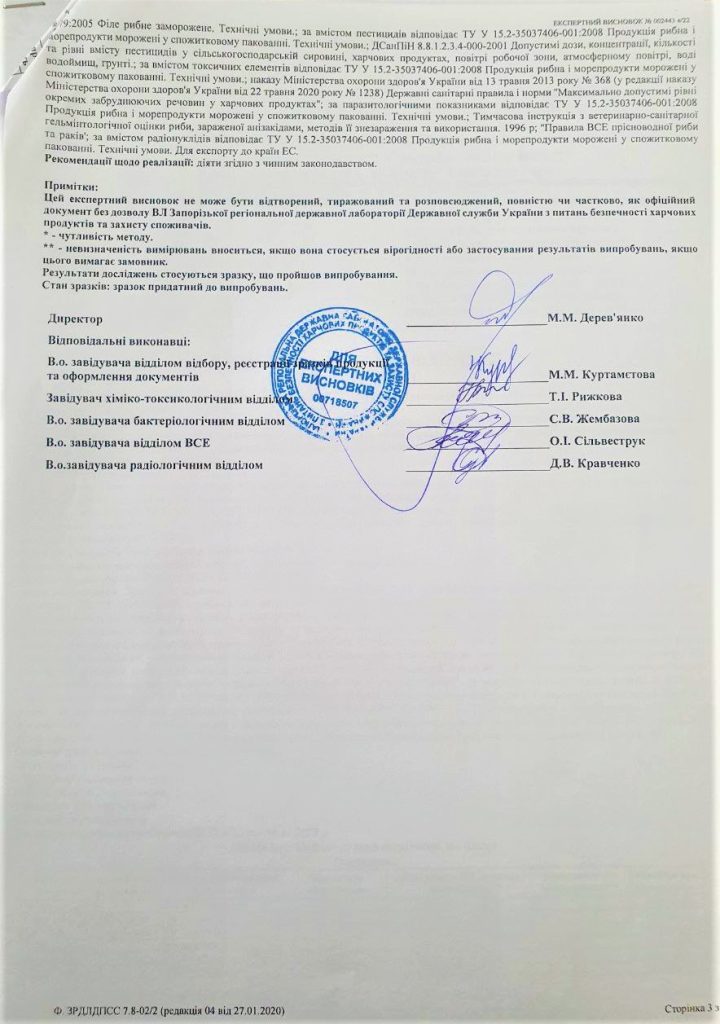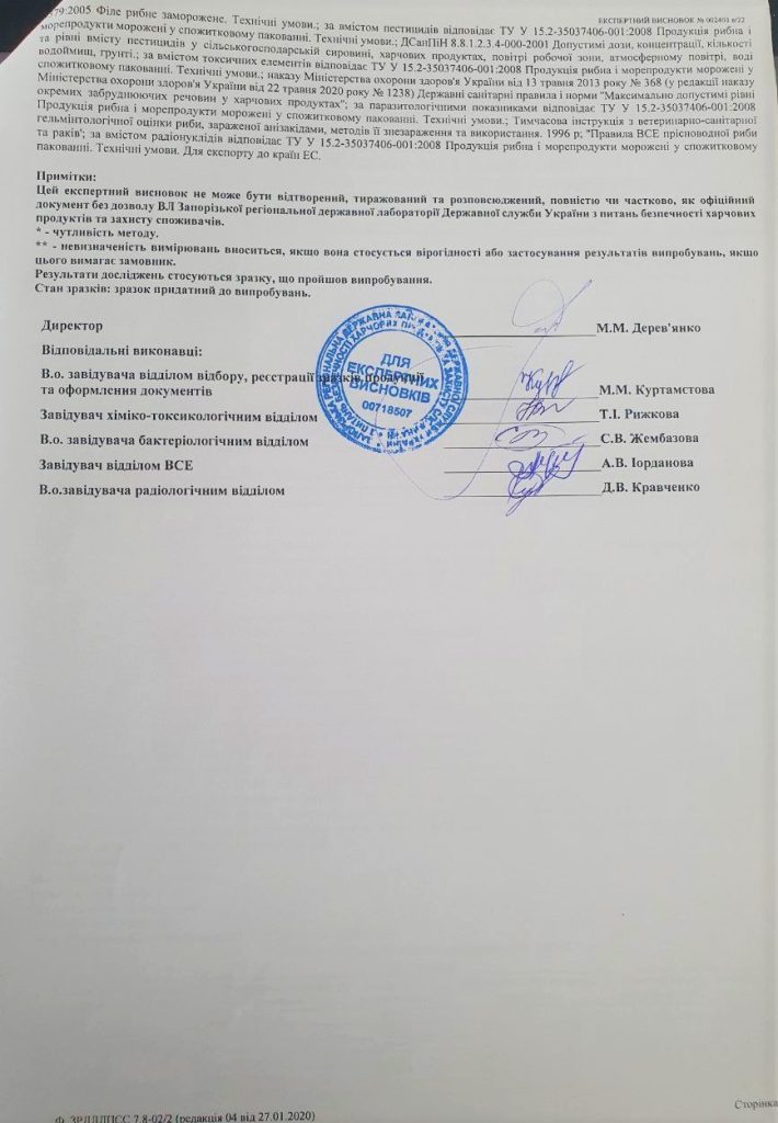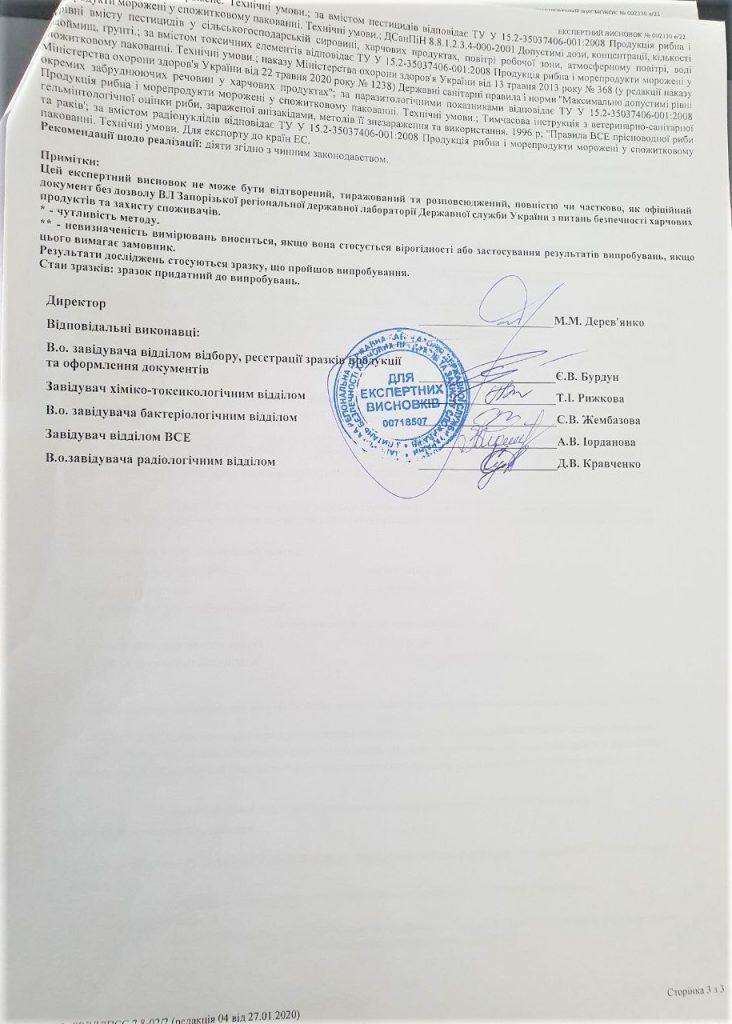 Що було далі з забракованою партією судака, історія замовчує. Принаймні, запорізьке управління Держпродспоживслужби повідомлене про це не було, хоча закон того вимагає. За ринковими цінами, у тих же магазинах Veladis, кілограм судака коштує 230 грн, філе — і того дорожче. Тобто мова про партію вартістю понад 2,5 млн грн. Гроші чималі.
