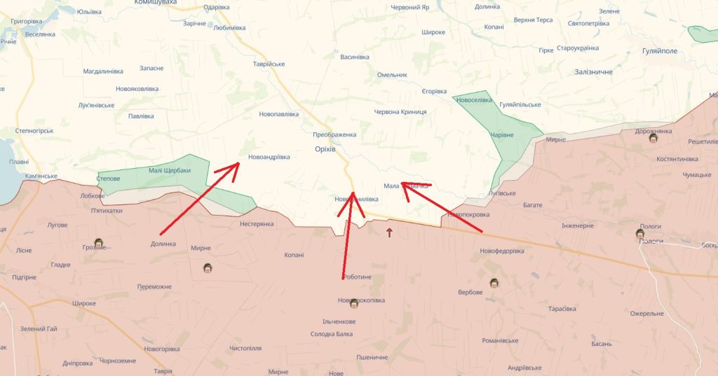 наступ на Оріхів може відбуватися з трьох напрямків — Новаандріївки, Новоданилівки та Малої Токмачки