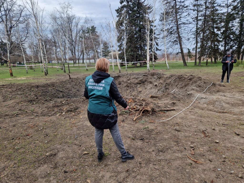 Спеціалісти Державної екологічної інспекції Південного округу продовжують обстежувати уражені території внаслідок ракетного удару 22 березня по Запоріжжю.