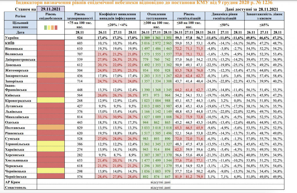 При этом ряд других ключевых показателей, по которым регион перешел в красную зону — уровень госпитализации, динамика уровня госпитализации и заполняемость коек с кислородом находятся в норме с большим «запасом». По некоторым из этих показателей, ситуация в области лучше, чем в ряде областей, вышедших на днях из «красной» зоны. Например — г. Киеве, Львовской, Закарпатской, Харьковской и ряда других областей.