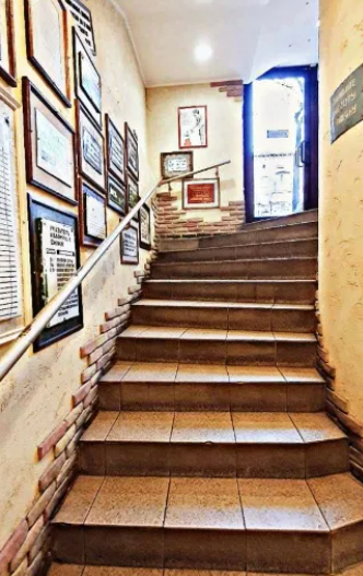 Парадный вход в кафе — с проспекта. «Атмосферная» обстановка, уютный интерьер.