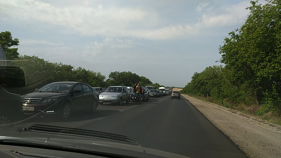 На трассе под Запорожьем в районе села Каменское образовалась большая пробка, автомобили стоят по несколько часов.