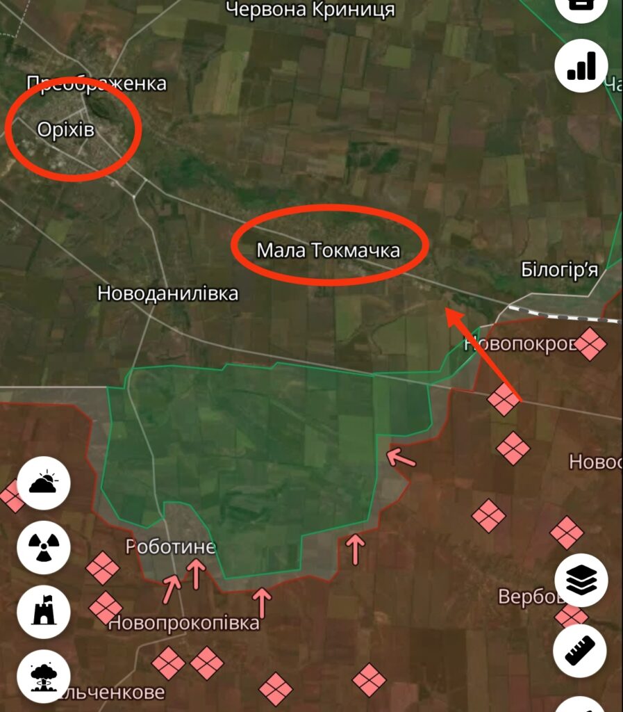 В той же час за даними DeepState, окупантам вдалося дещо покращити свої позиції довкола окупованої Нестерянки — в напрямку Новоандріївки, що з південного-заходу прикриває вхід до Оріхова. Ця частина ділянки була відносно спокійною останній рік.