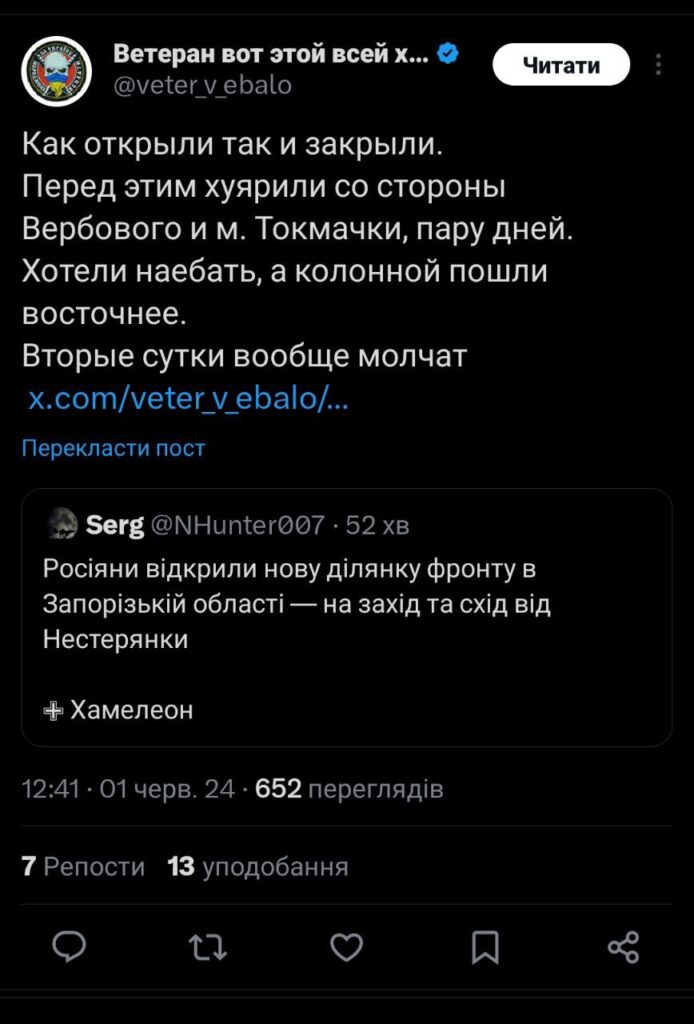 Про зміни в оперативній обстановці на Запорізькому напрямку, — в матеріалі Акценту.