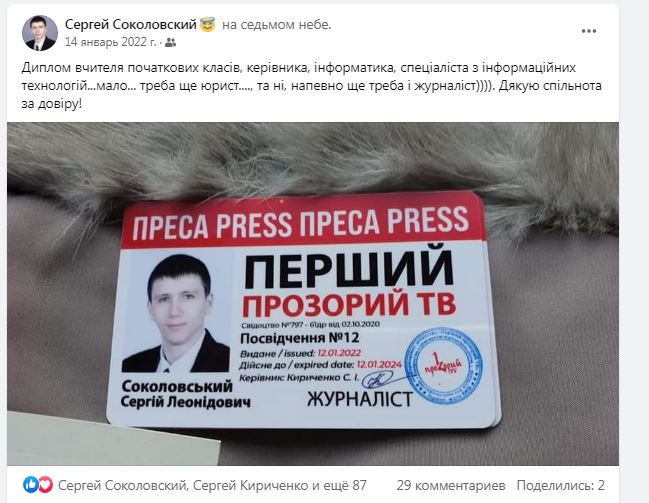 В соціальних мережах збергілися публікації, які пов’язані нібито з Сергієм Соколовським в різний період часу. Наводимо скріни нижче: