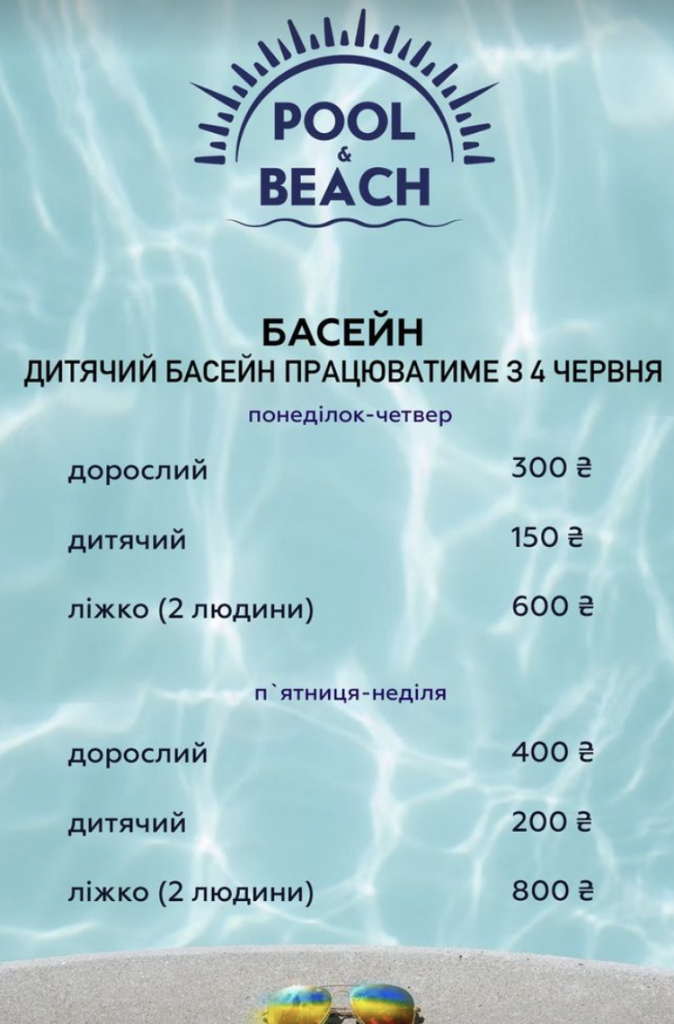 - Будний день (пн-пт) – взрослый 300грн, детский (6-11лет) 150грн.