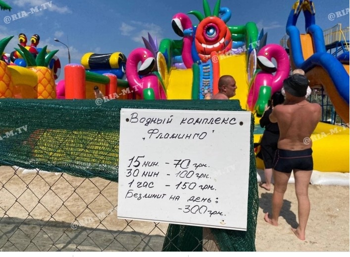 Пока что местные жители не спешат повышать цены. Например, любимое развлечение для малышей – прокатиться с водной горки стоит 25 грн за 5 спусков.